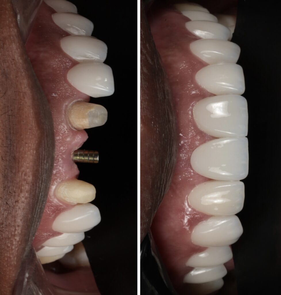 It consists of placing a small titanium screw into the jawbone, which acts as the root of the tooth. A crown (artificial tooth) is then placed on top of this implant, resulting in a functional and aesthetic smile.
